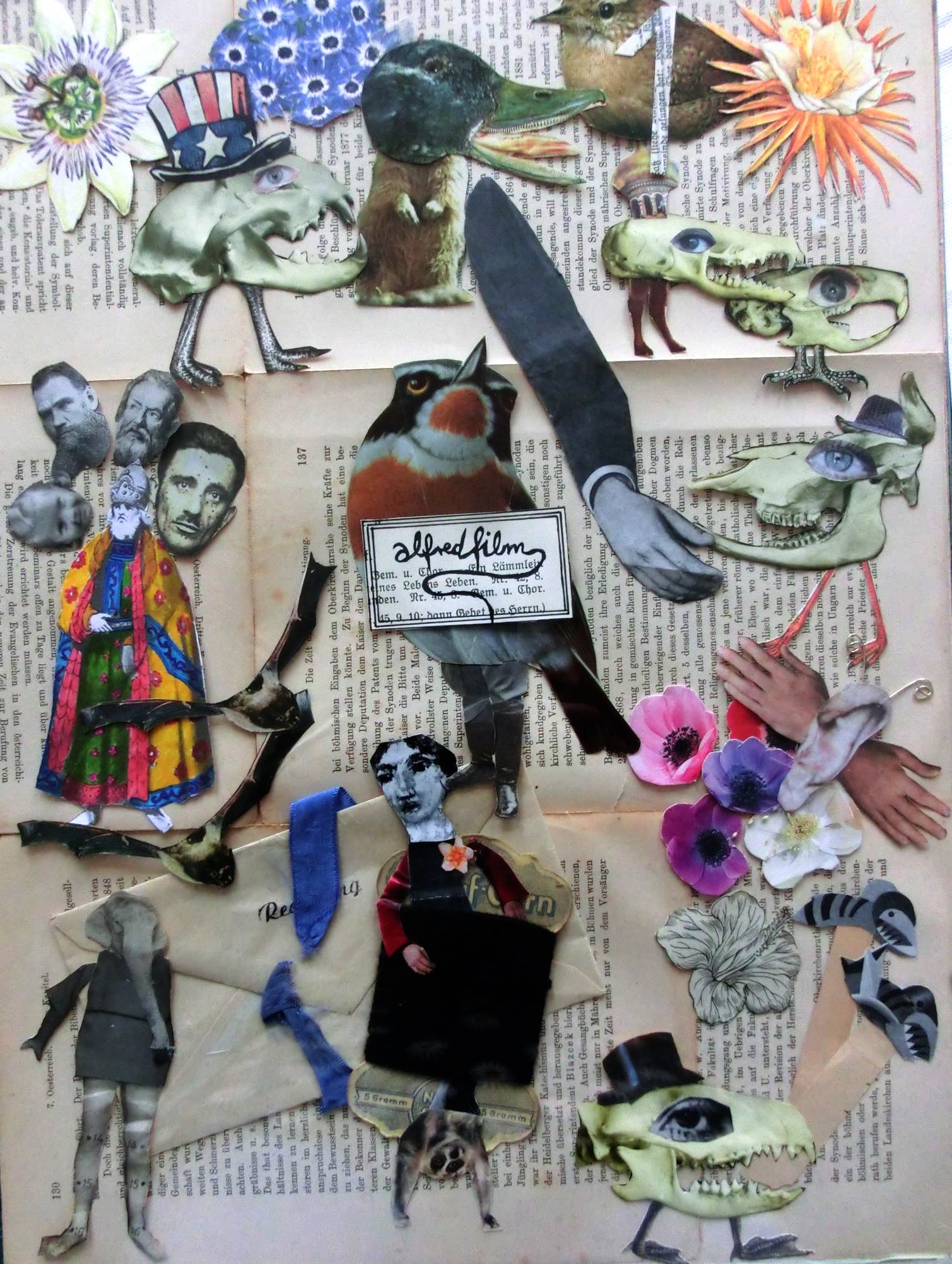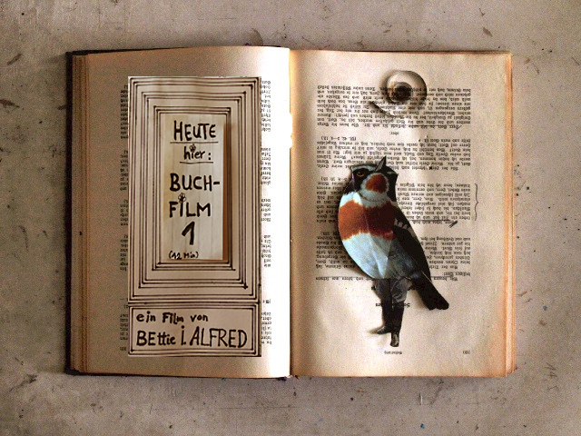 Collage aus Schnipseln des Cut-Out- Animationsfilms „Buch2“