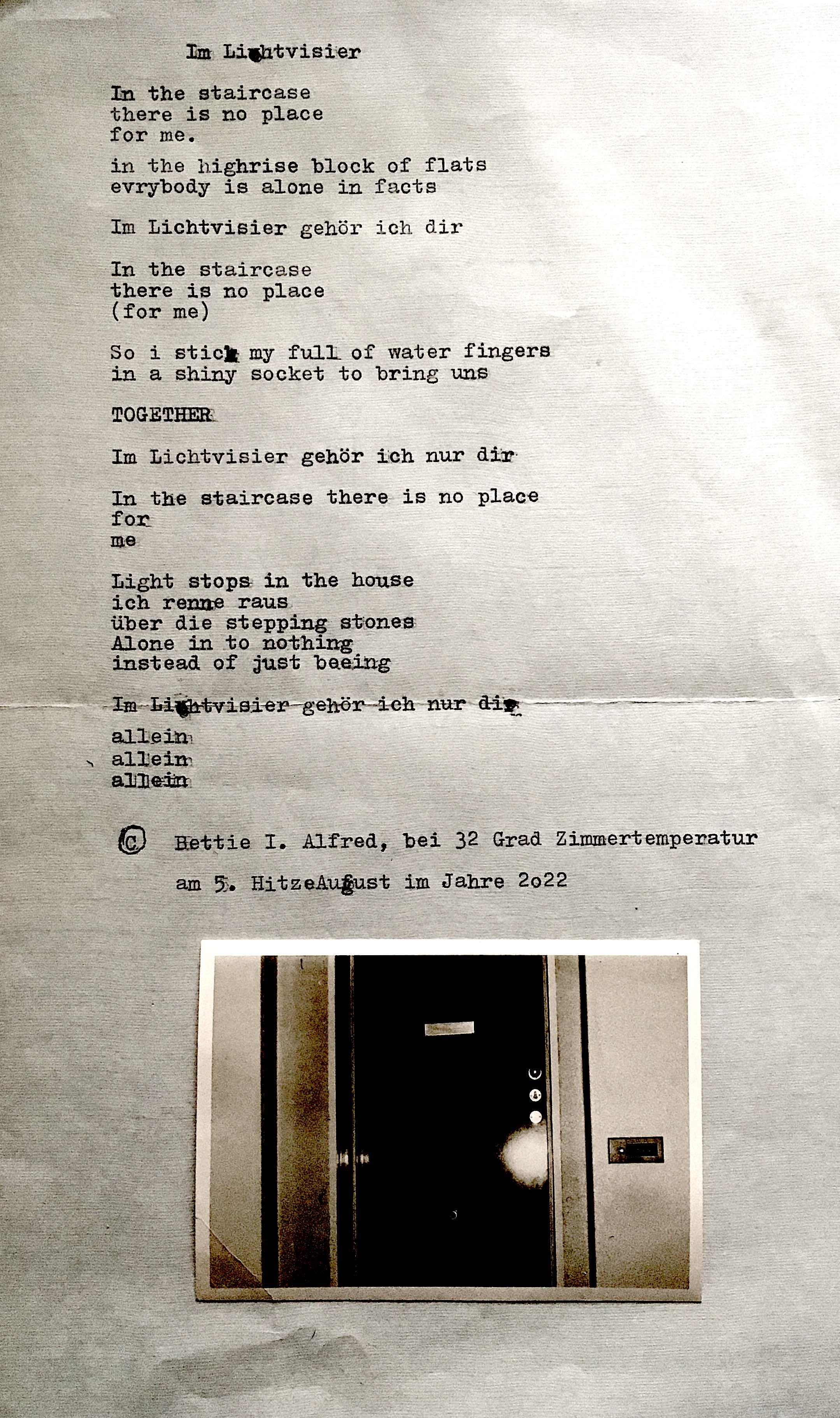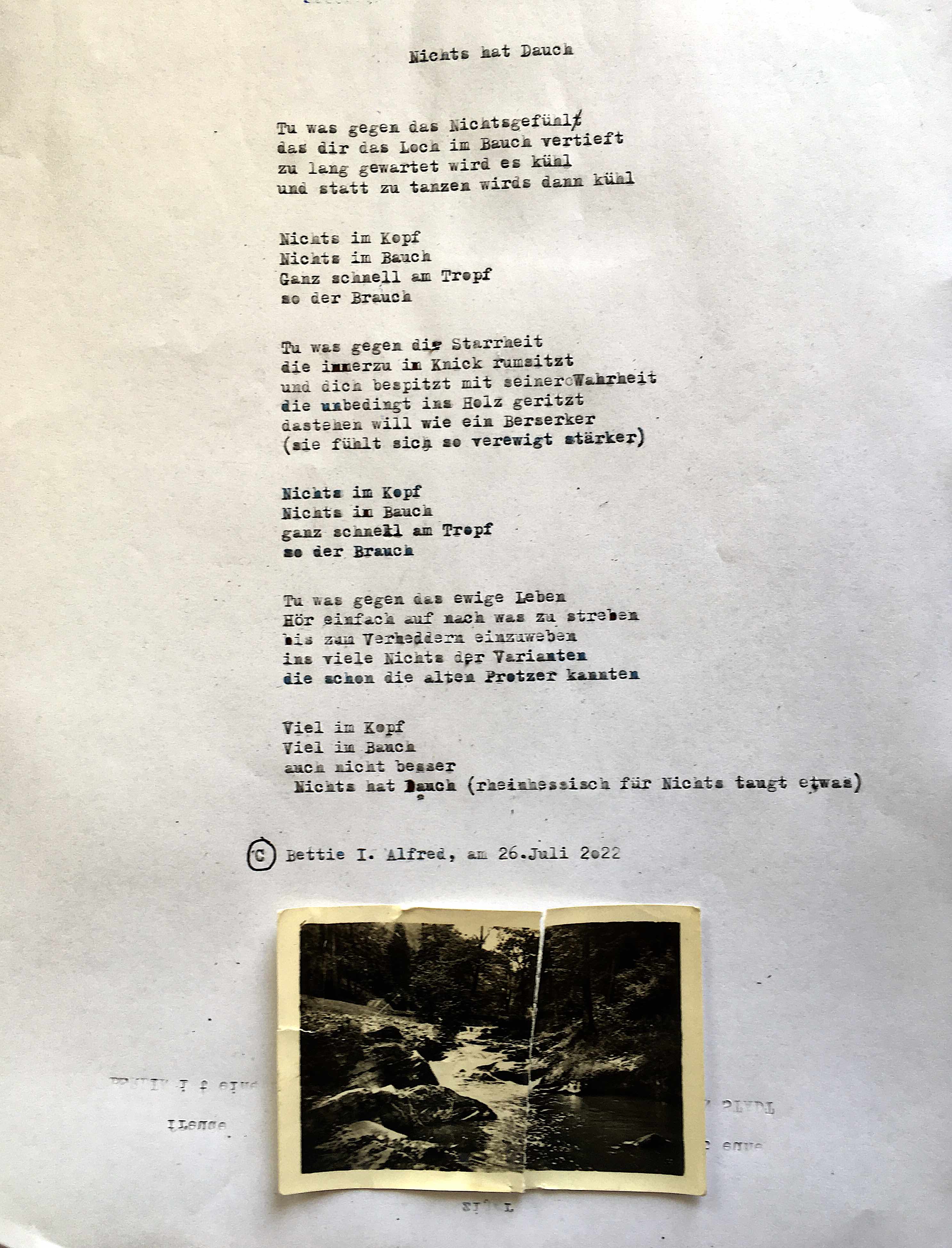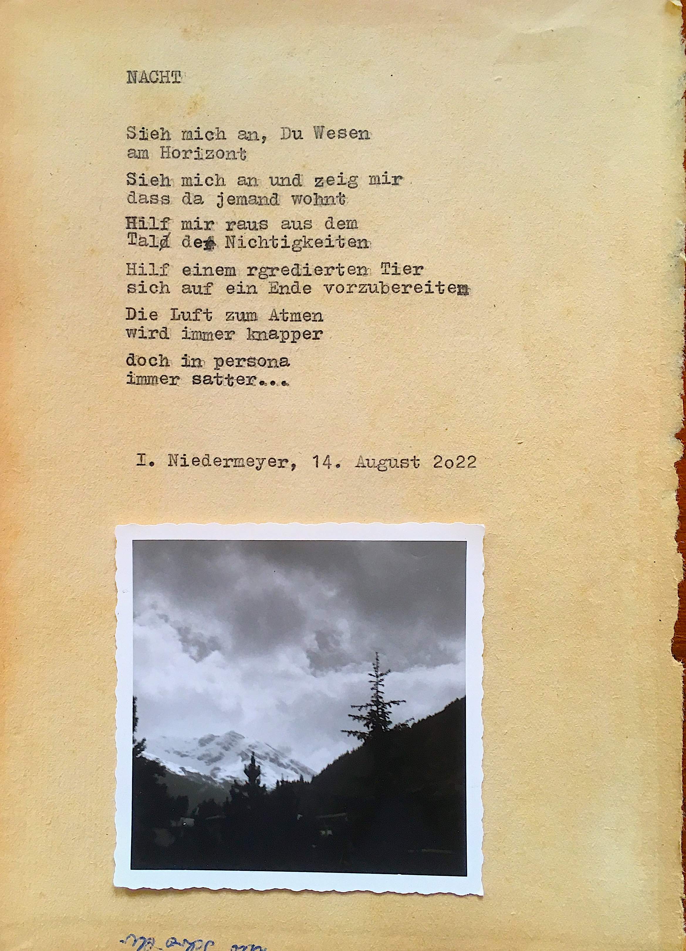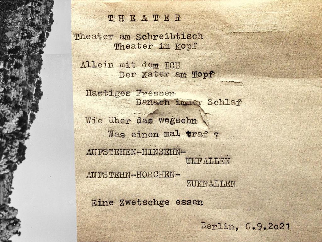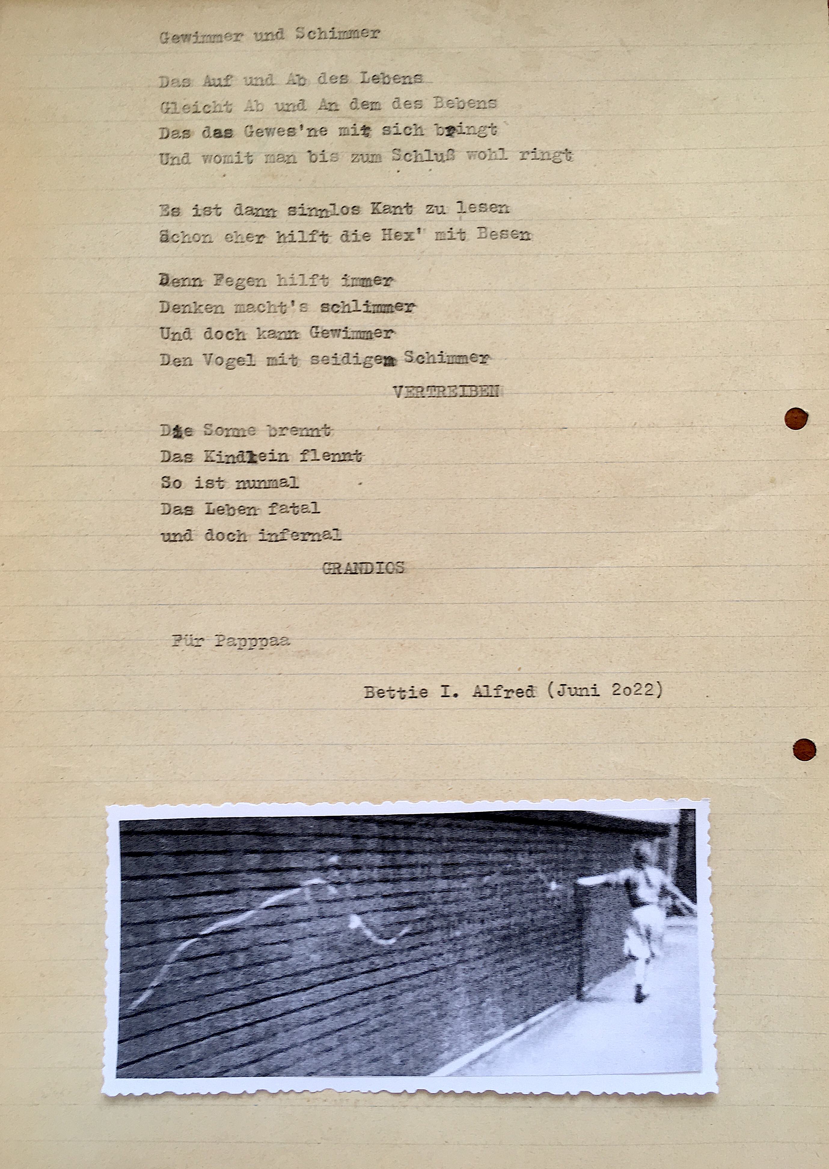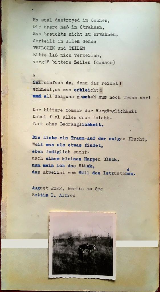 *alles Verlürickte wurde mit einer underwood 315 auf vergilbtes altes Papier getippt und teilweise mit alten Fotografien (Fundstücke) versehen