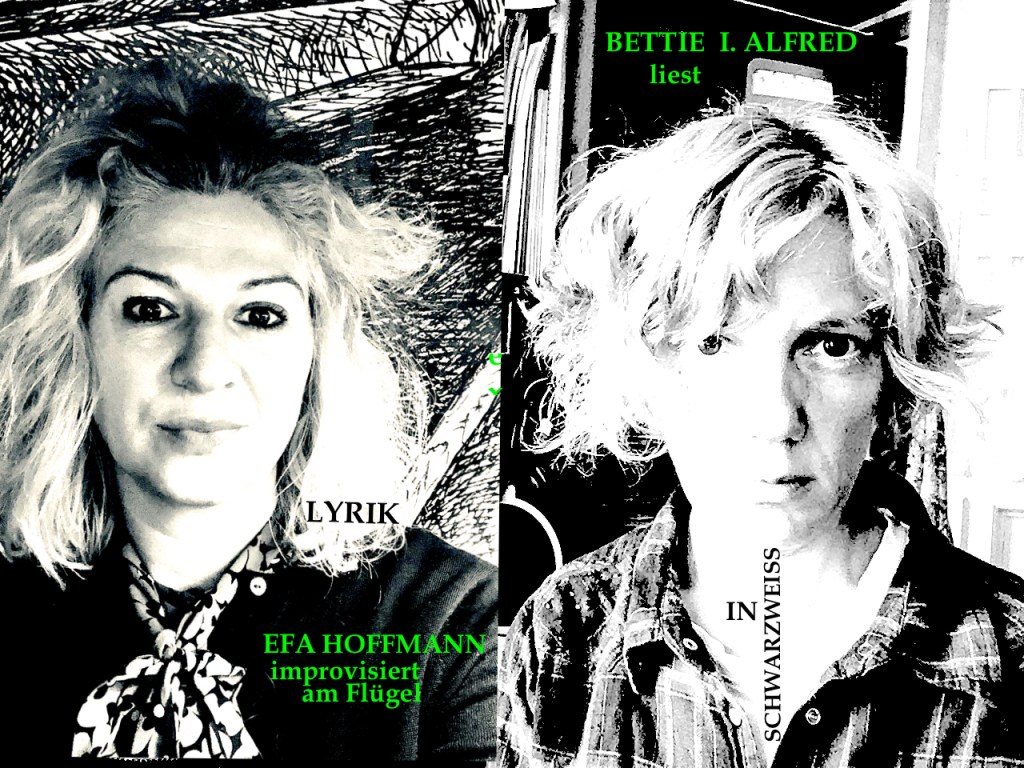 Bettie I. Alfred schreibt seit Jahren eine Lyrik, die sie selbst als Schwarzweiss-Lyrikbezeichnet. Sie stürzt sich dabei in die Wogen einer Menschenseele, die Worte dabei eine große Stütze, und tippt förmlich Ereignisse in die Welt, die es zu beachten gilt. Frau Alfred changiert dabei, wie in ihren eigen-artigen Hörspielen und Texten auch immer im Grenzgebiet zwischen Lebenslust und Absturz, zwischen Humor und Trauer.